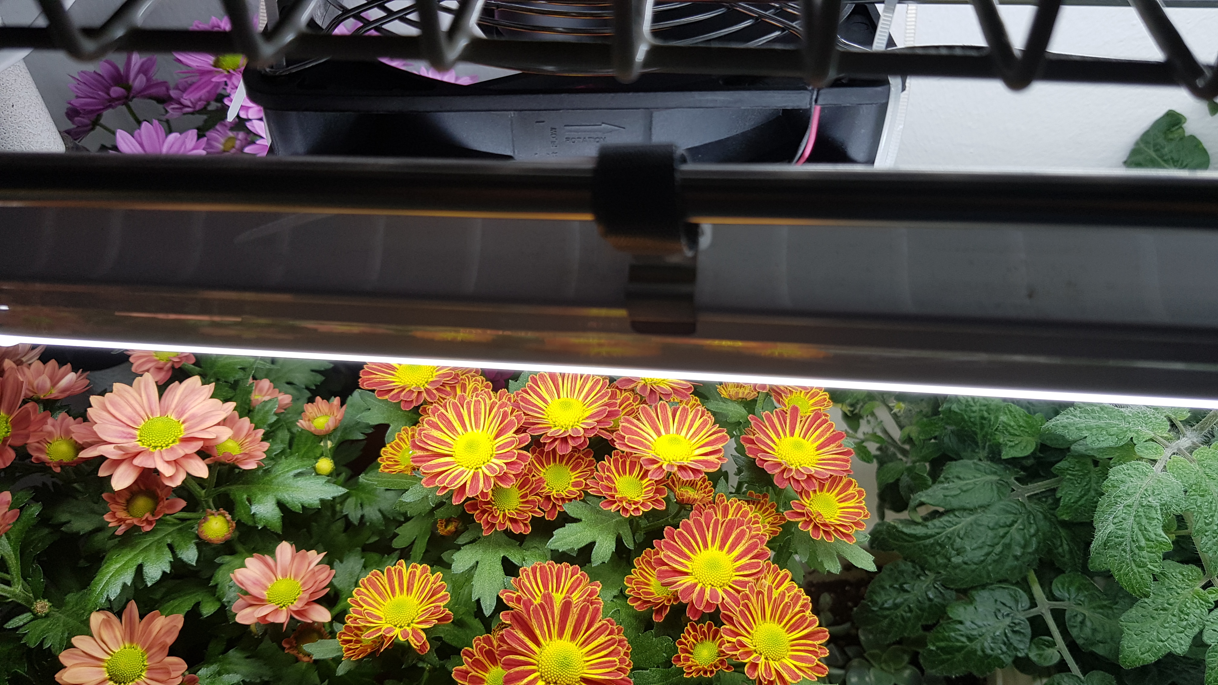 아무래도 바람이 없는 베란다 상황이고, 겨울에는 문을 못열기에 아예 팬을 달아줬습니다. 컴퓨터에 쓰는 팬들은 인터넷쇼핑몰에서 팔고 있습니다. USB로 전원을 연결해줄 수 있고, 크기도 다양합니다. 인공적으로 바람을 계속 불어 줄 수 있어서 식물들 성장에 도움이 될거라 봅니다.