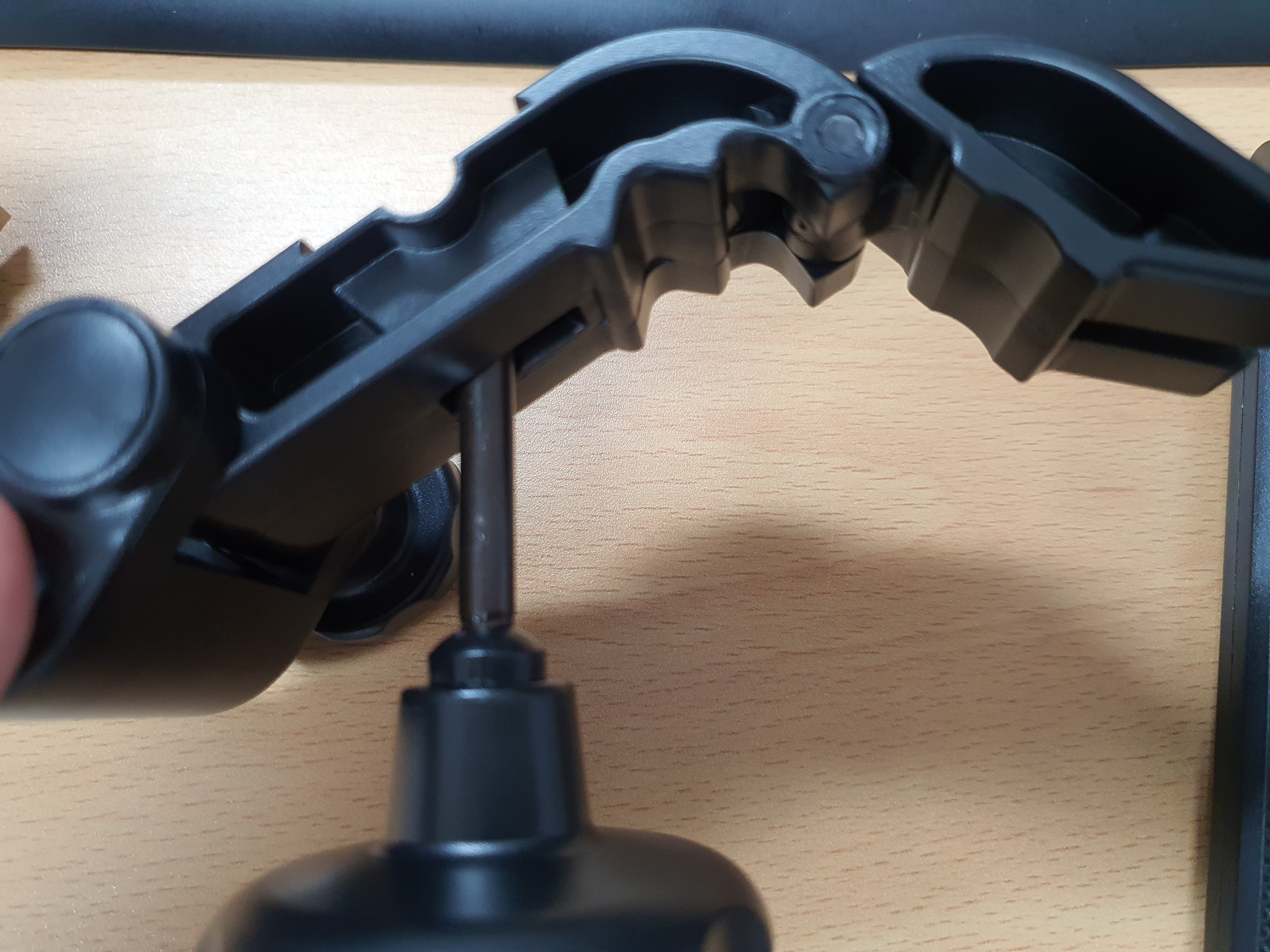 아래 사진에 보시는 것처럼 완전히 벌릴 수 있고, 암레스트 부분에 물릴 수 있게 됩니다. 약간 타이트 하긴 한데, 완전히 빼고, 다시 조립해서 쪼으면(?) 아주 잘 맞고 견고하게 물리게 됩니다.