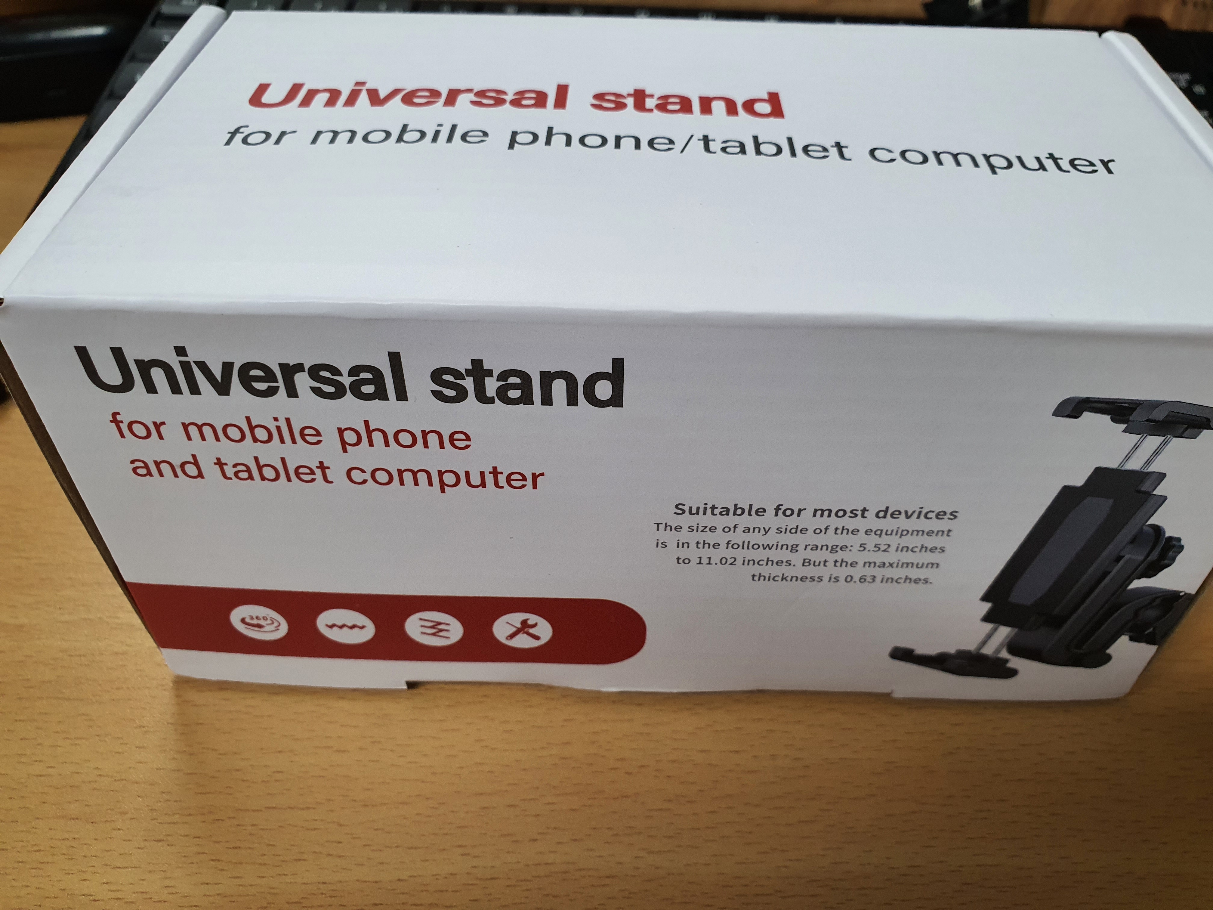 그리고 도착한 Universal stand !!!! 그리고 상자에 적혀 있듯이, 대부분의 장치에 적절한 아주 좋은 물건을 구입하게 되었습니다.